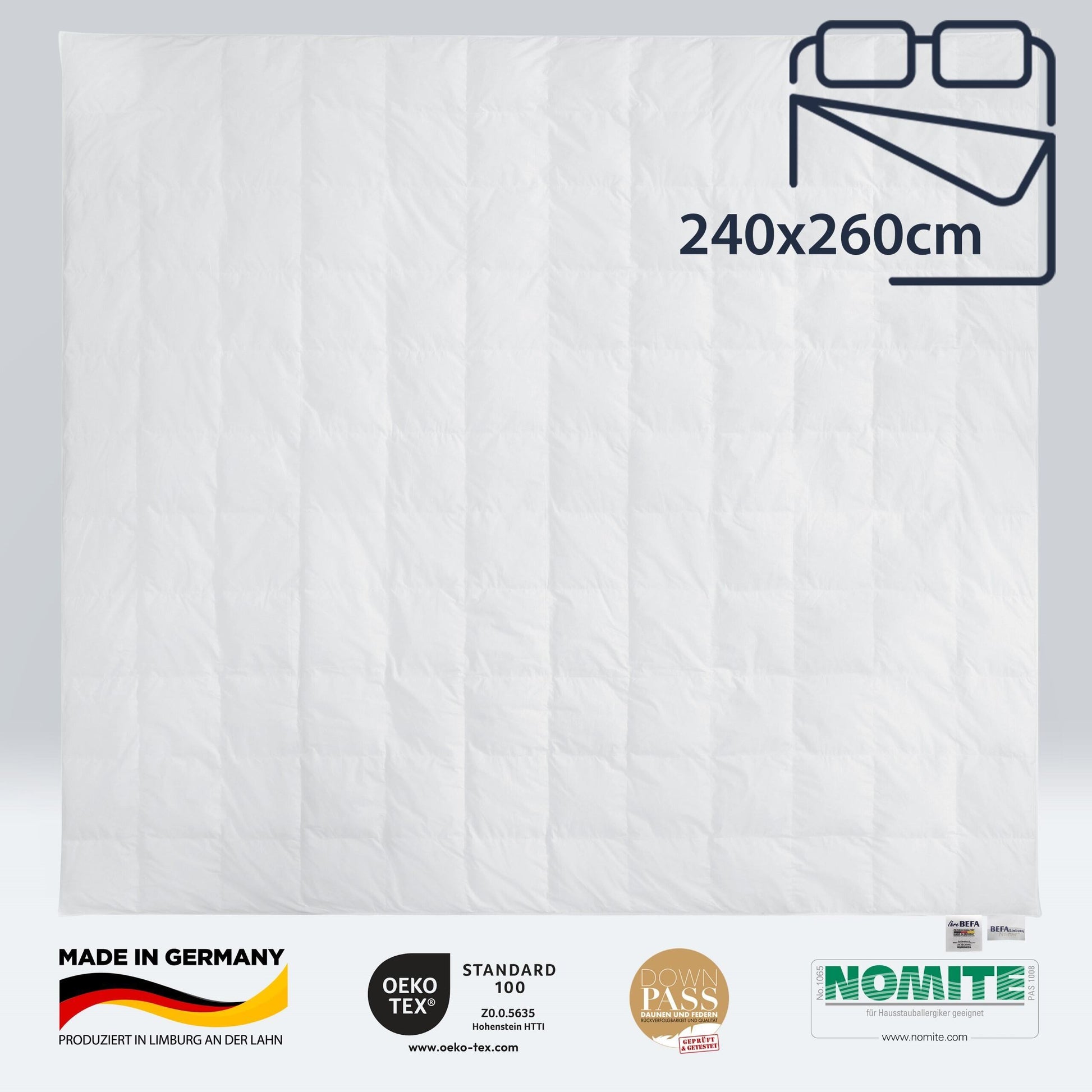 Füllung: 90% Daunen-/ und 10% Federanteil, Entenfedern Klasse 1